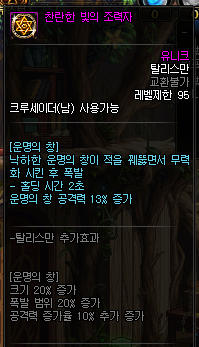 탈리스만 부가 옵션은 글로브에만 적용되며, 스크랩엔 오로지 딜 옵션만 적용됩니다.