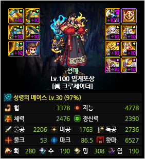 배틀크루는 지능 스탯을 사용하는 마법 고정 데미지 캐릭터이며 그에 따라 아바타 옵션은 위와 같이 맞춰주시면 됩니다.