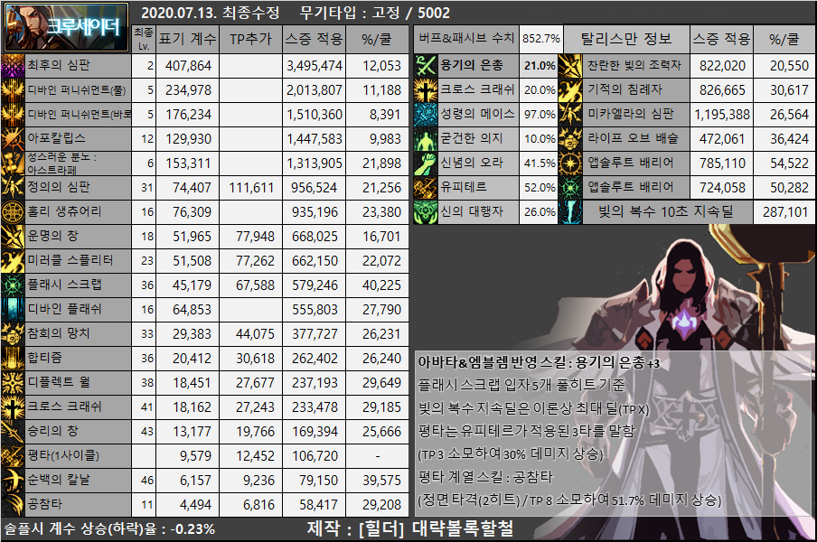 물론 크루세이더라는 이름을 달고 있는 이상 타 딜러들보다 스펙을 더 빡빡하게 맞춰 가야 하는 경향이 있긴 합니다만 ㅎㅎ...