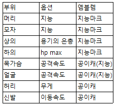 가슴, 얼굴 부위의 (지능) 엠블렘은 이벤트로만 풀리는 특수한 엠블렘으로서, 현재 따뜻한 손길 상점에서 구매하실 수 있습니다.