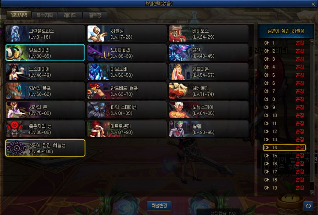 ESC -> 심연에 잠긴 하늘성 아무채널이나 입장