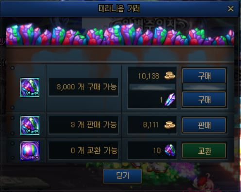 테라니움 10개당 정제된 테라니움 1개로 교환이 가능합니다