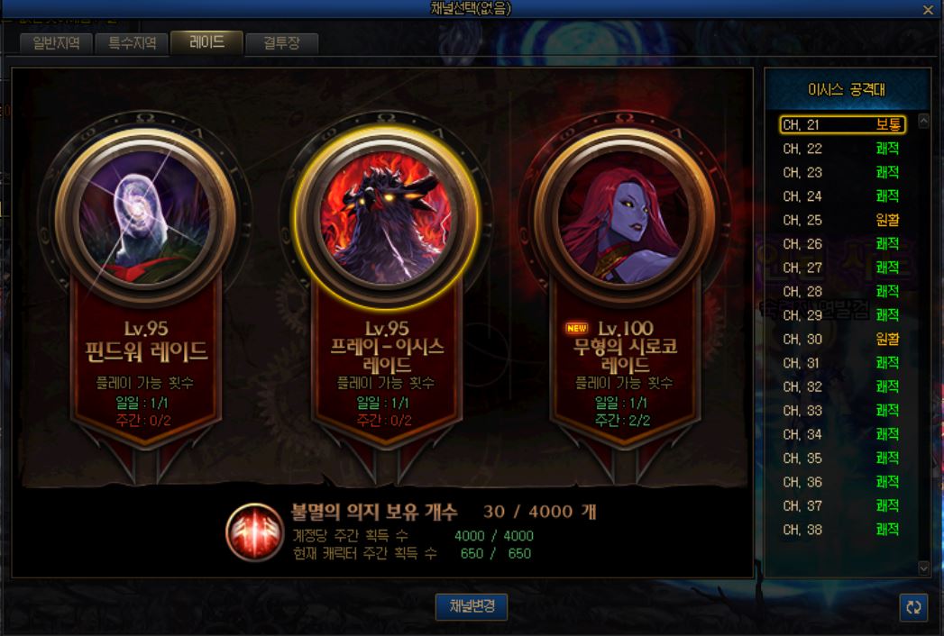 바로 레이드 채널 -> 이시스 레이드로 들어가시면 됩니다