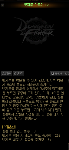 빗자루 착용시 캐속과 적중률이 증가됩니다.