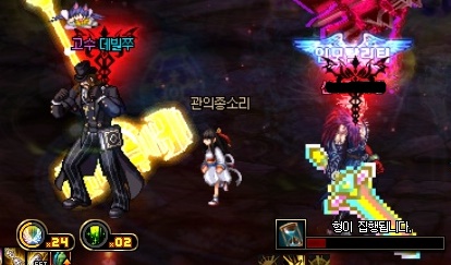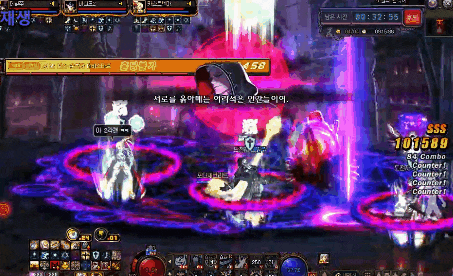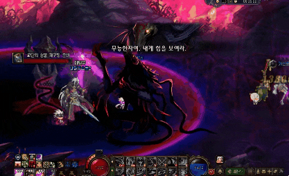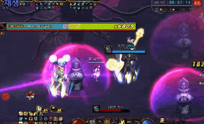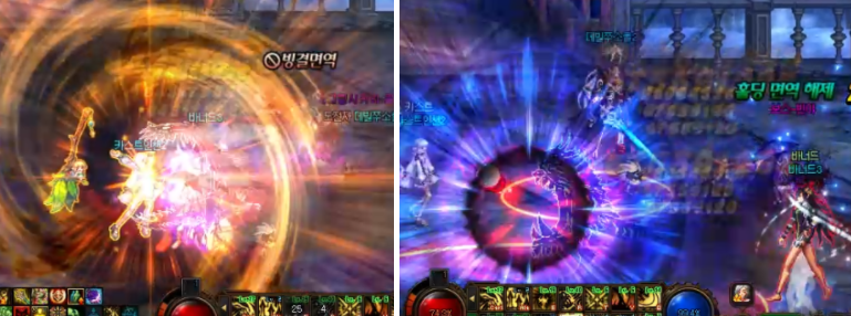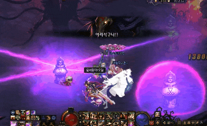 *마법진을 가진 유저는 잠시 후 생기는 보라색 장판(좌우 2개)에 다가가 "퇴치" 캐스팅을 다 채워야합니다.