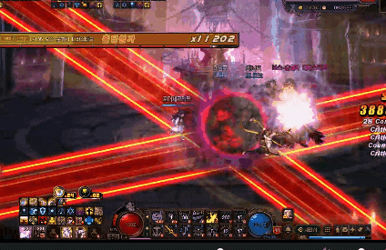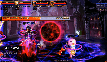 *마법진이 없는 유저들에게 노란빛이 다가오는데 빛의 장판에 들어오면 빨간빛으로 변하며 빠른속도로 유도되어 유저를 공격합니다. 이 공격에 맞으면 빛의 장판이 줄어듭니다.