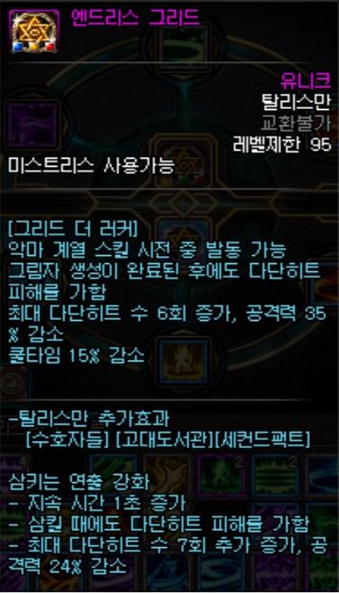 - 딜과 다단히트도 그렇지만, 제일 핵심은 맨 첫줄인 악마계열 스킬 시전중 발동가능에 있다고 생각한다.