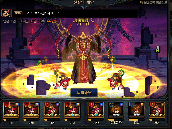 토벌전은 어드벤처와 달리 캐릭터가 전투하다가 죽는 개념이 없습니다.