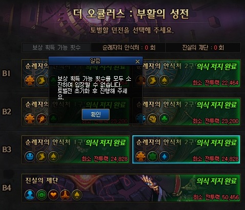 보상 획득 가능 횟수를 모두 쓰면 더 이상 입장할 수 없습니다.