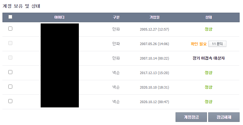 넥슨 계정 3개, 네이버 계정 3개 이렇게 있는데