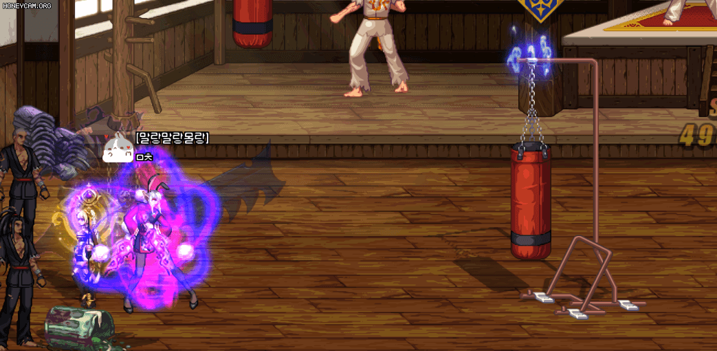 스킬을 꾹누르거나 다른 스킬 사용 도중 모션없이 사용 시 스킬은 비관통이 되고 데미지가 늘어납니다.