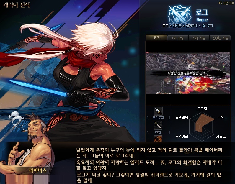 '라이너스가 말하는 캐릭터 전직' 입니다.