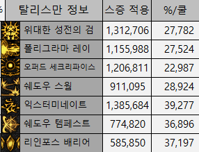 탈리스만 중에서 총계수와 %/쿨로 따지자면