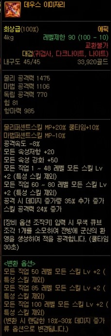 스킬 공격력 8% 증가 물마독 20% 증가 → 변환 옵션으로 변경