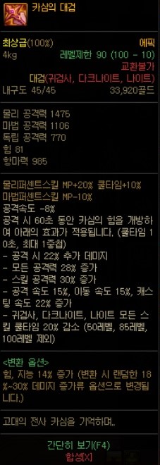 카심의 힘 개방 옵션 변경점 1~85 +2레벨 → 1~48 +2레벨/ 60~80 + 2레벨/ 변환옵션 추가