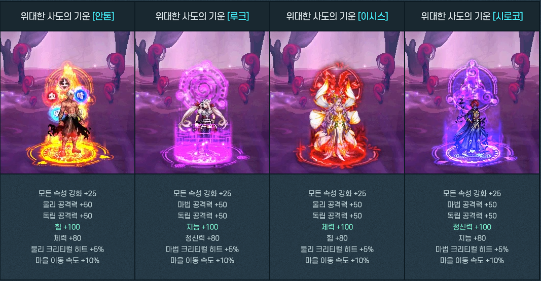 안톤과 이시스, 루크와 시로코 각각 주요스탯이 20정도가 높을 뿐이고