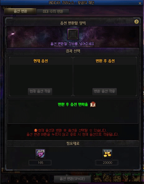 절망의 광석으로 변환한 옵션을 확정적으로 '최대 수치 변환' 해주는