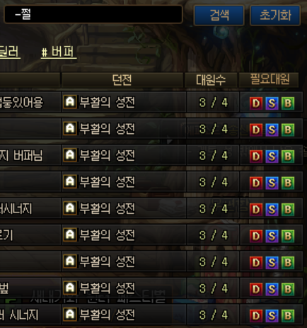 여기서 더 다가가면 파티 내의 역할군(D, S, B)의 역할을 나눠서 하고 있는 형태지요.