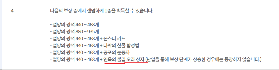 물론 이 컨텐츠는, 4단계에 들어가는 너무 많은 피로함과, 그 보상이 별로 크게 느껴지지 않는다는 점, 마지막으로 4단계를 도는 사람들이 직접적으로 보이지 않는다는 점에서 그렇게 많은 욕구를 불러일으키지는 않습니다.