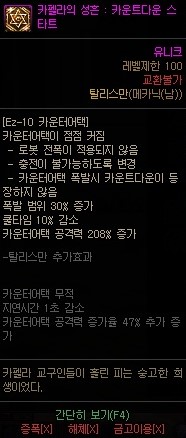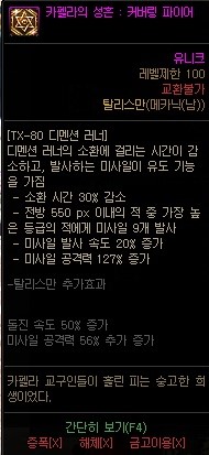 딜 증가량: 복잡함 쿨타임 감소 없음 퍼쿨 증가량: 파악불가 (탈리 착용시 28,032)