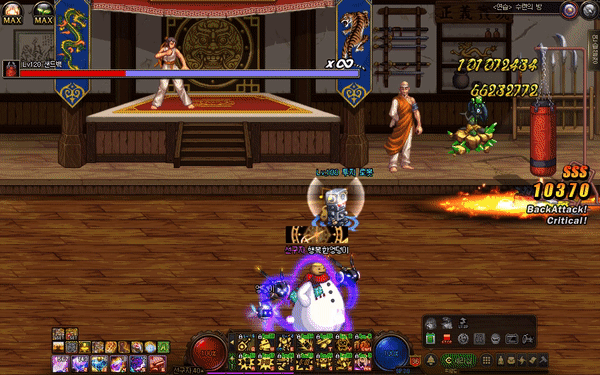 장점: 기존 디멘션 러너에서 불편했던 점을 모조리 고쳐버렸습니다. 우선 소환시간 감소로 선딜이 꽤나 줄었습니다. 원본 스킬은 위치 지정을 잘못하면 딜이 모조리 증발해버렸는데, 유도 기능이 생겨서 대충 써도 풀딜이 꼽힙니다. 유도 사거리 또한 아주 넉넉한데, 제가 움짤 딴 위치가 샌드백에서부터 X축 Y축 유도 거의 최대사거리 입니다. 코 앞에서 쓰면 딜이 새던 원판과 다르게 미사일이 전부 적중합니다.