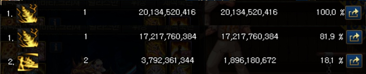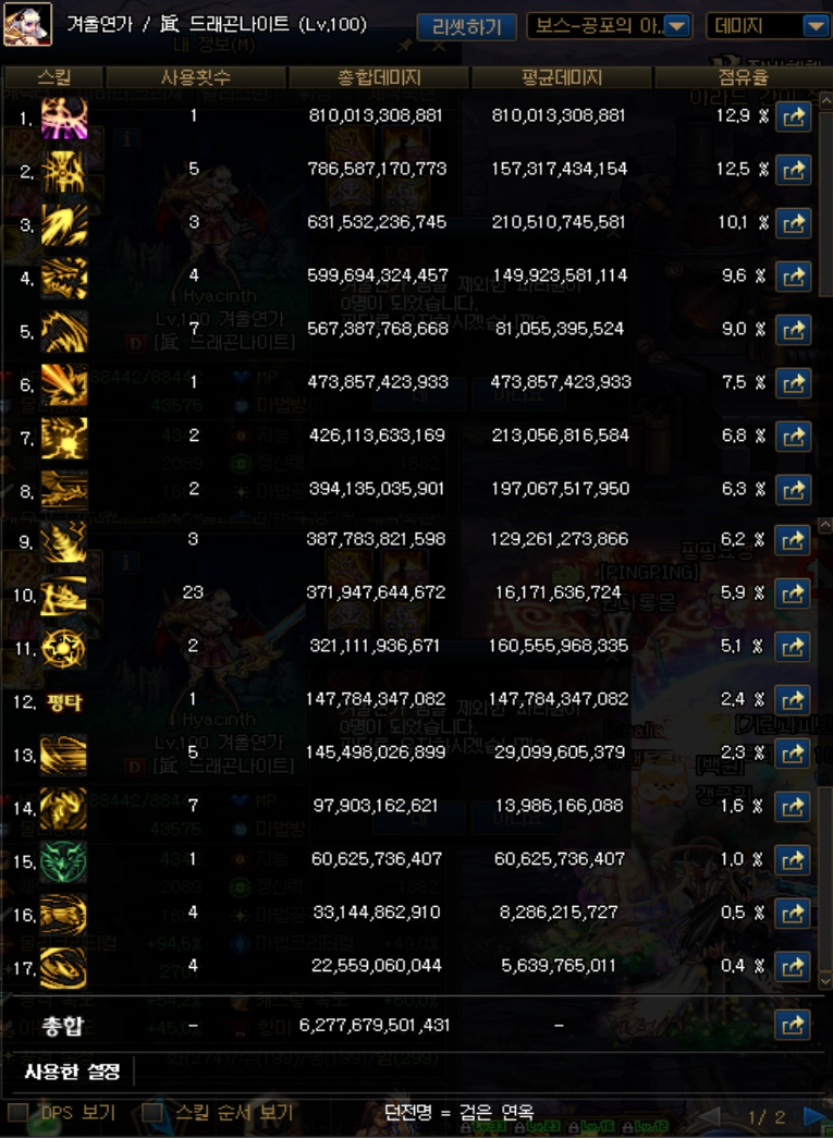 위는 합동, 아래는 단독사용시와 드래곤투스의 딜표입니다.