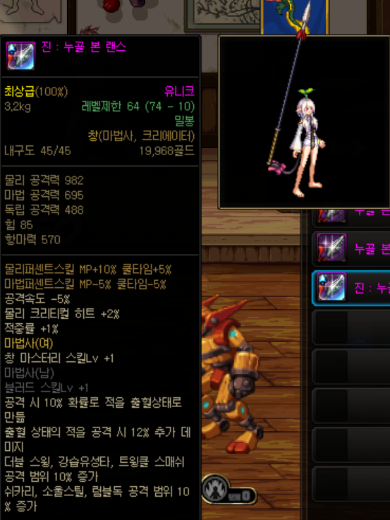 그리고 이 패치를 받은 아이템 중 하나, 진 누골 본 랜스에 대해서,