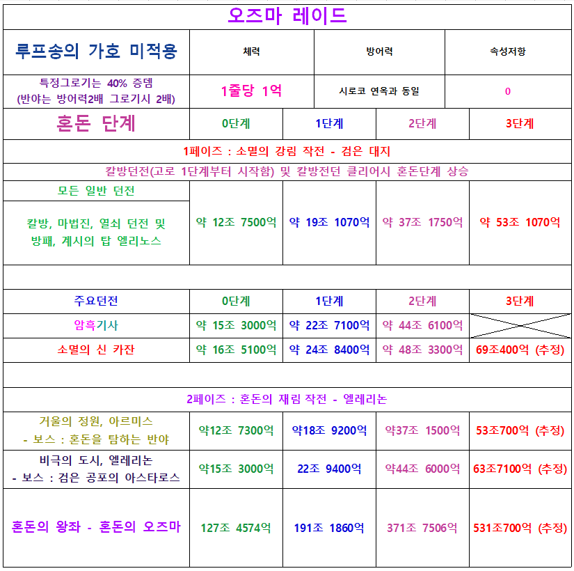 [공통] [오즈마] 오즈마 레이드 체력표 (17)