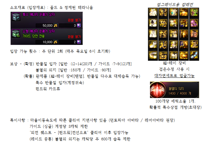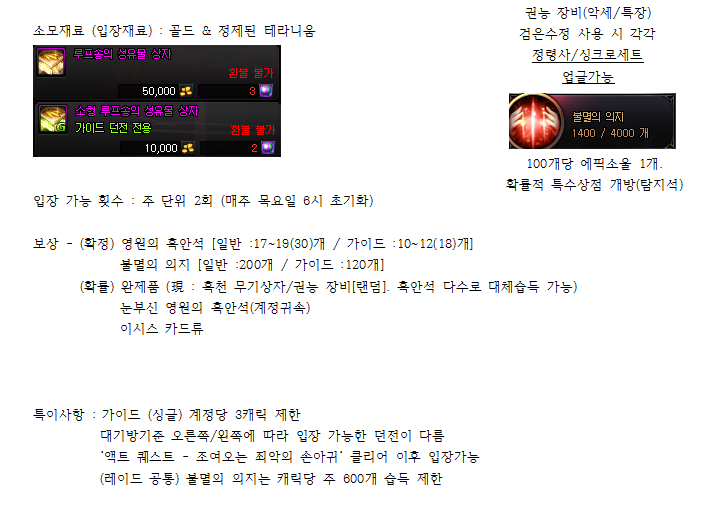 - 솔플 가능한 컨텐츠는 솔플 기준으로 작성하였습니다.