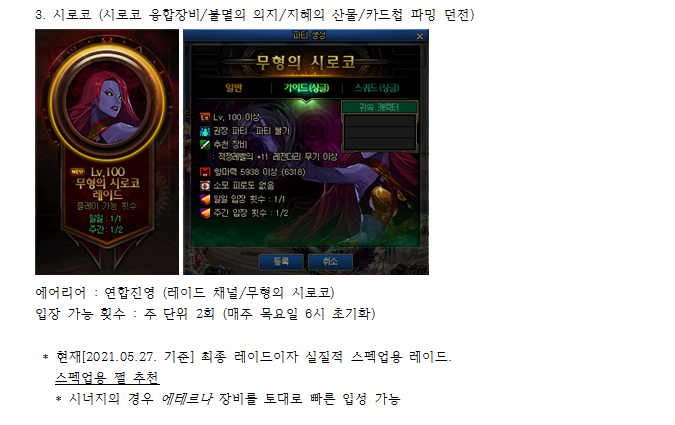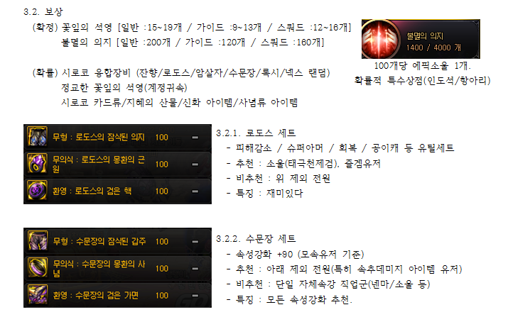 2. 레이드(가이드편) / 3. 아이템 세팅편 / 4. 버퍼편