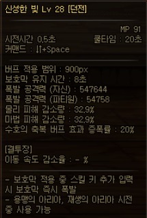 신성한 빛 쿨타임 20초 / 지속시간 8초