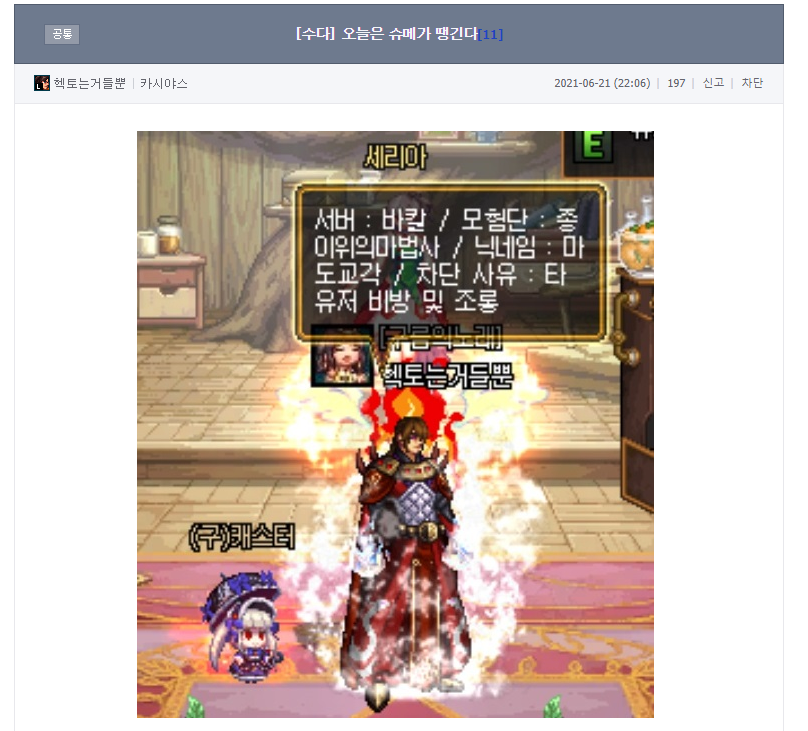 저를 인게임에서까지 박제를 시도하셨더군요