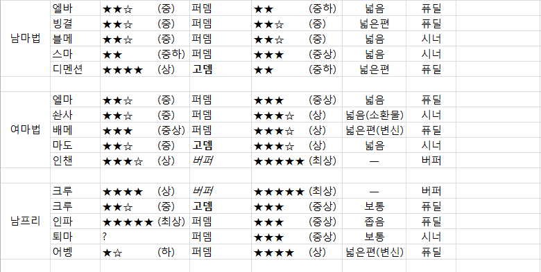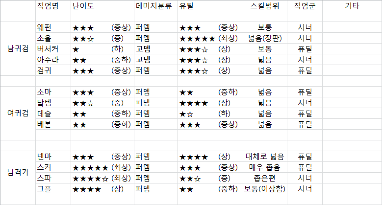 - 난이도는 대충 "사막끼면 할만한가?" 수준이라 보시면됨 + 짤딜난이도 + 캐릭이해도