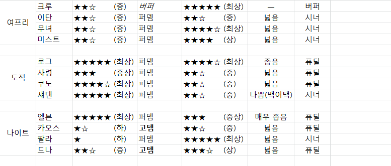 제가 키워본거 기준 제가 생각하는거 & 길드원분들이 키우시는거 여쭤본 기준으로 써봤습니다.
