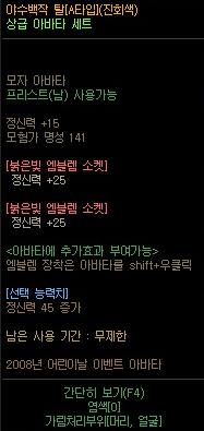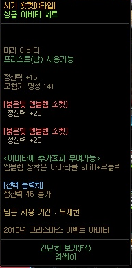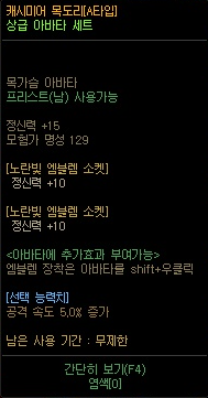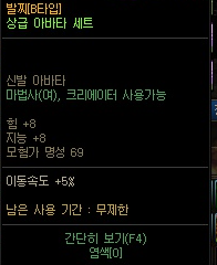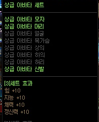 레어아바타풀셋보다 스텟을 더 높은 셋팅입니다