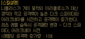 그리고 20제 치고는 레벨당 sp 소모량이 25로 어둠의 손톱과 흑사진이 레벨당 20인데 비해 좀 높습니다.