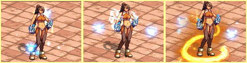 전직: 손에서 청색 이펙트 생성. 둥근원이 생긴다.