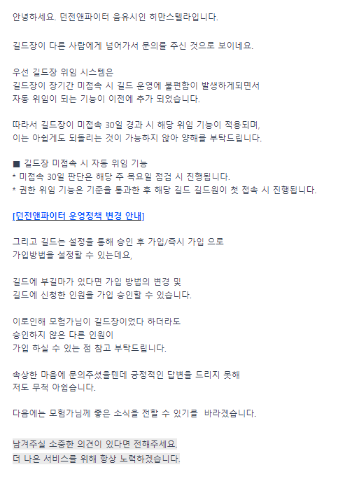 길드 가입 조차 안 되어있었던 쌩판 남한테 이양한다는 이야기는 듣도 보도 못했는데? ㅋㅋㅋㅋ