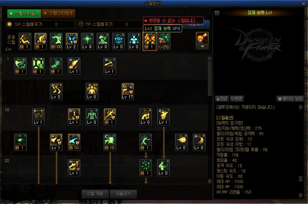 지능캐릭터의 경우는 스텟 포기 없이 가져갈수 있지만 힘 캐릭터의 경우 스텟 55를 포기 해야 한다