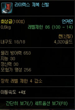 장비 옵션과 상관없이 100레벨 신발에는 기본 스텟으로 이속 4%가 붙어있음
