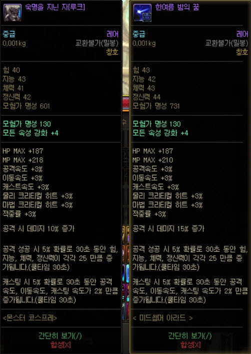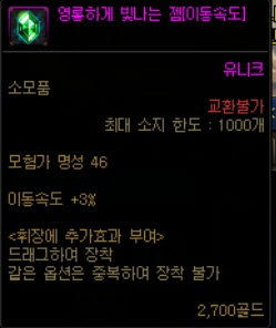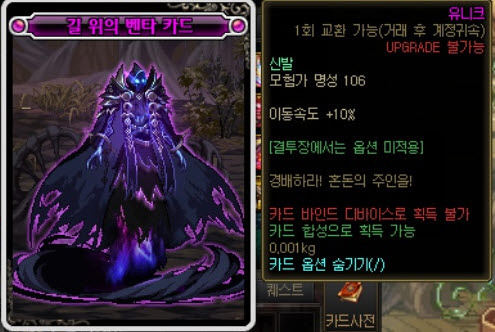 칭호와 마찬가지. 대신 2%의 이속이 붙고, 이벤트로 주는 크리쳐의 경우 속도 옵션이 없는경우도 있으니 주의