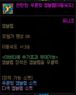 1.5% * 푸른빛 엠블렘 소켓 4개 = 6%