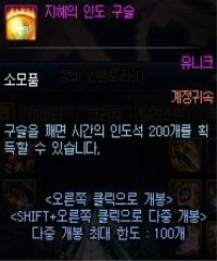 각각 사용시 인도석 200, 300개를 흭득할수 있고, 흭득 가능한 던전을 11판 입장이 가능합니다.