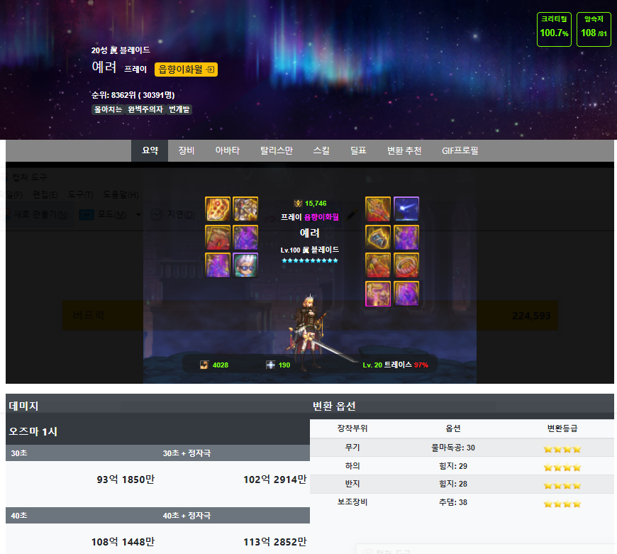 변환 옵션 추천이라든지, 인던에서 실제로 적용되는 쿨타임도 확인할 수 있어서
