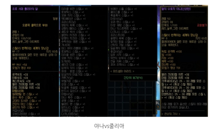 처음 100지능 나왔을때 야나크리처, 명성 731에 독공, 물마크3, 25~30 스킬 1