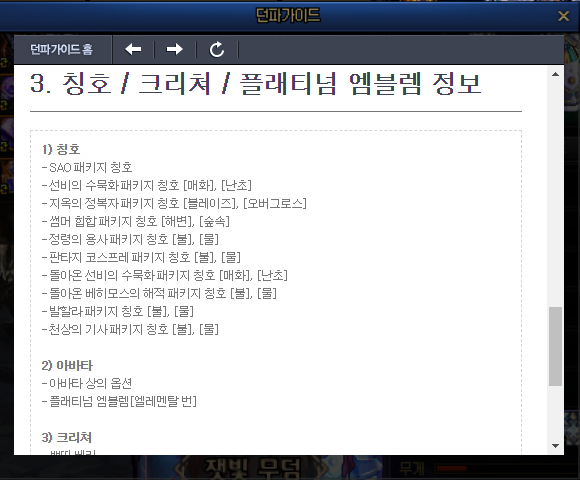 3. 내 직업에 맞는 칭호 및 크리쳐는 던파 가이드를 통해 쉽게 알 수 있다.