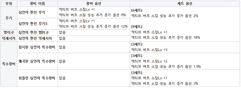 또한, 버프 강화장비인 심연의 편린 장비의 무기는 일반무기와 S무기,