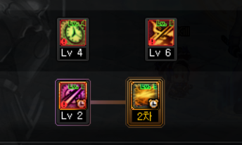 2) 이후 2번째로 자주 쓰는 스킬(2번 탈리스만 슬롯)에 대해서도 최대한 쿨 짧은 기본기를 넣고, 4콤보에 다크볼을 집어넣는다.