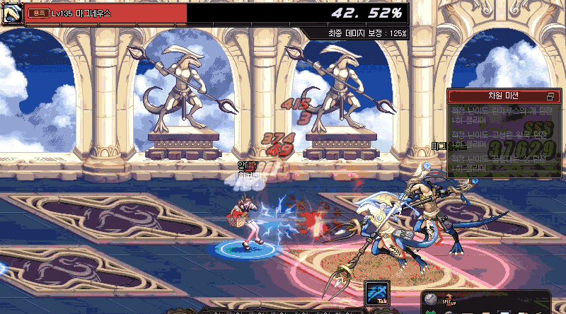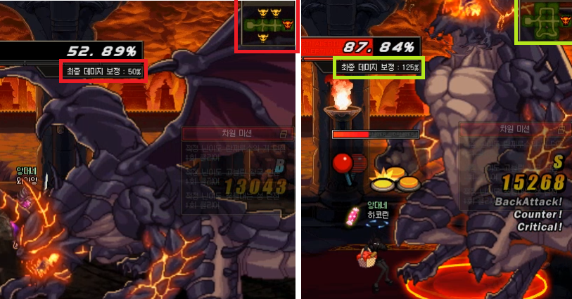 데미지 보정치가 대폭 상승하는 모습