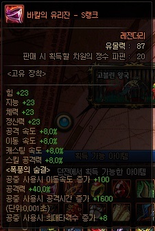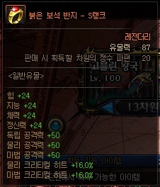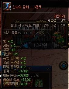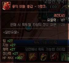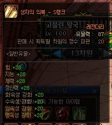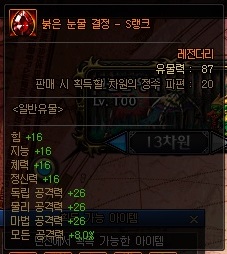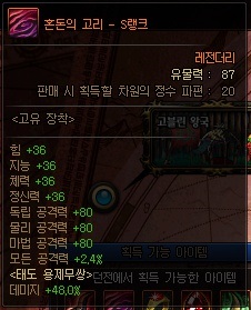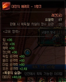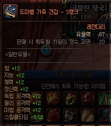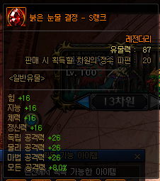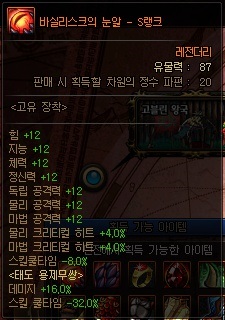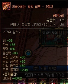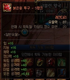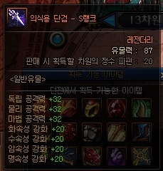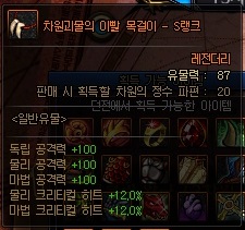 일반 유물 정보 (S랭크 기준) *모든 던전에서 획득 가능 | ||